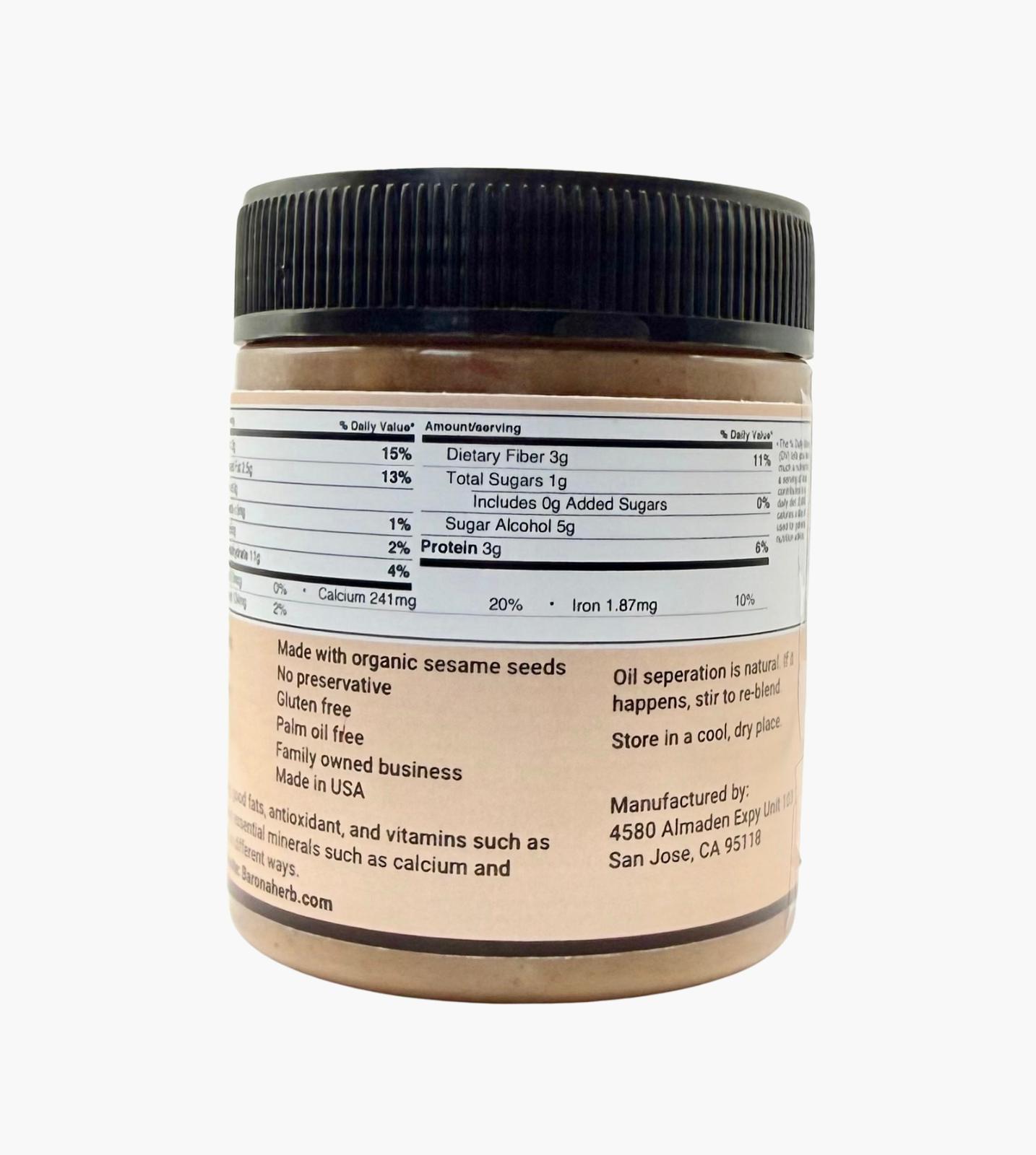 Rich in protein, healthy fats, fiber, and antioxidants, our sesame spread provides essential vitamins (iron, B vitamins, vitamin E) and minerals (calcium, zinc, magnesium) to support overall health.