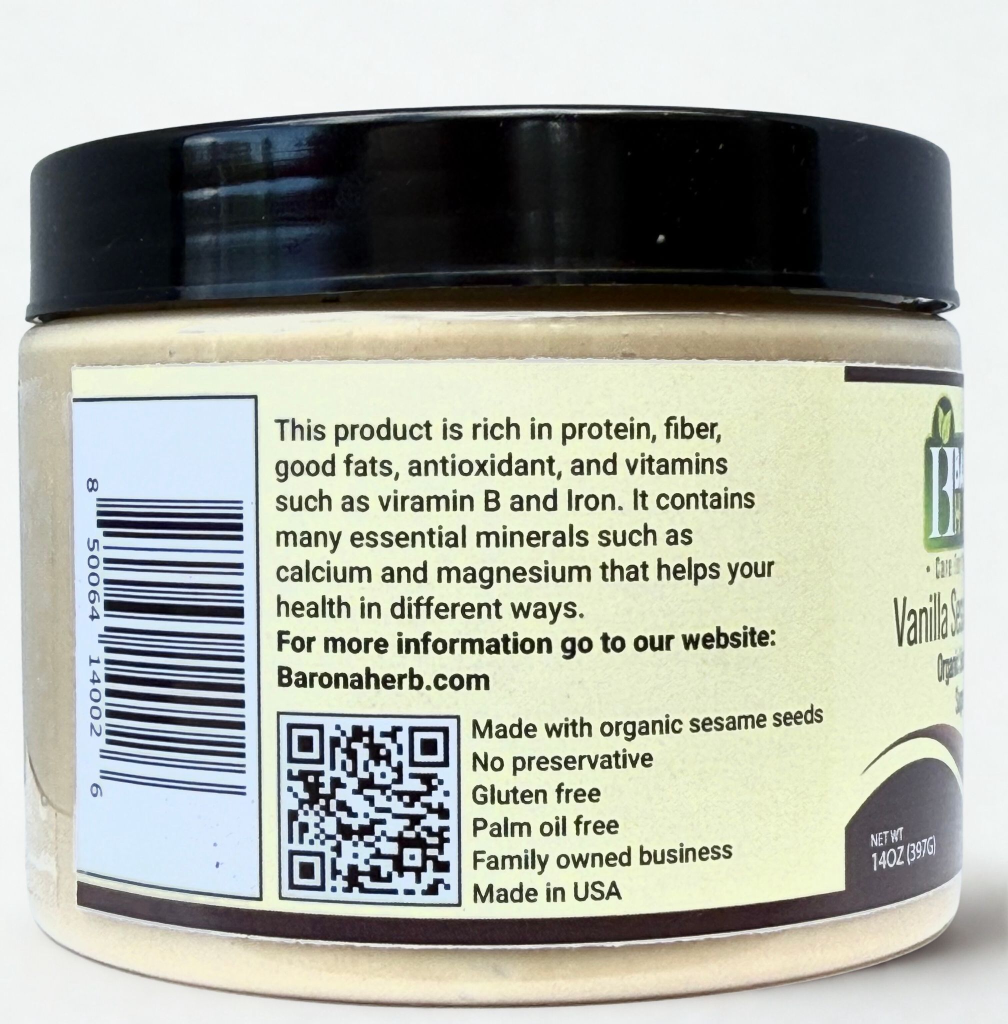 Fill your day with the sweet scent of vanilla This product is a rich source of healthy fats, plant-based protein, antioxidants, and essential vitamins like iron, B vitamins, and vitamin E, making them a natural energy booster. In addition, they are packed with fiber and vital minerals such as calcium, zinc, and magnesium. Our Sesame spread is suitable for all ages, but it is especially beneficial for children, the elderly, and athletes. It can be enjoyed at any time of day—whether for breakfast, lunch, or as a nutritious snack. Discover more about the health benefits of sesame spread and how it can support your overall well-being.
